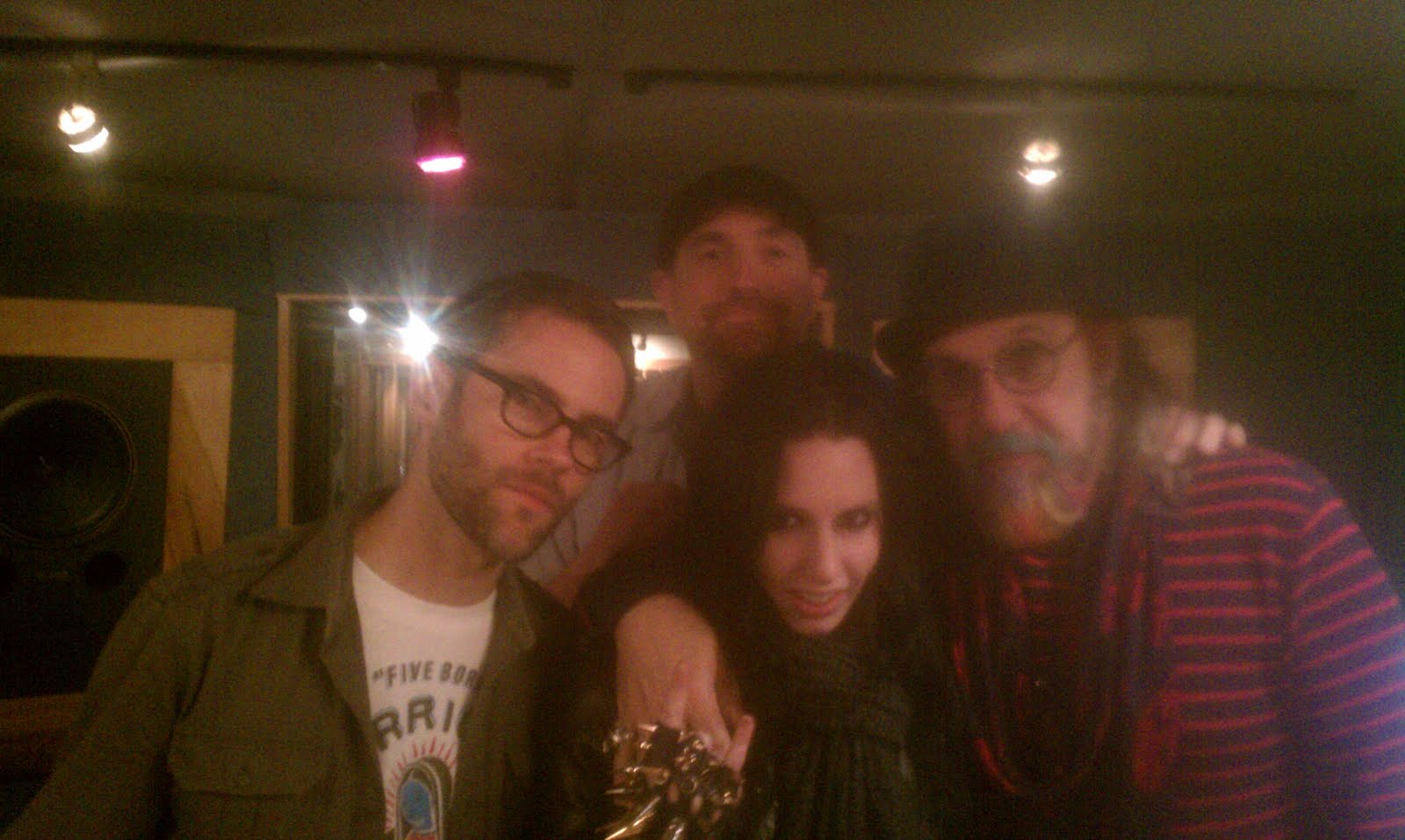 Incredible session with the great Mark Hudson and artist Madame Mayhem– We couldn’t resist asking Mark for a pic since the most popular question when folks heard he was at the studio was – “what color was his hair? Yes, that’s the uber talented Dave Eggar in the back:) Threshold Studios Producer Jeremy Sklarsky has since updated his phone to include INSTAGR.AM:)